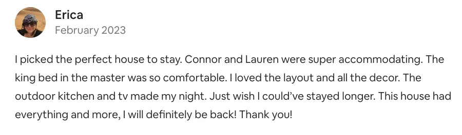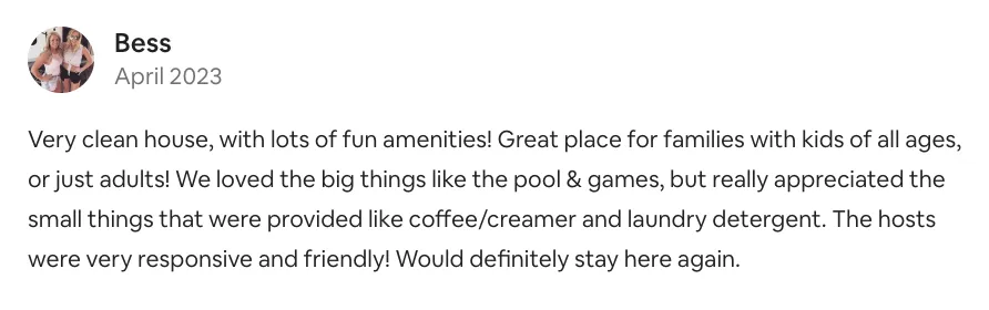 - 2 full baths are stocked with items including: shampoo, conditioner, body wash, and fresh towels